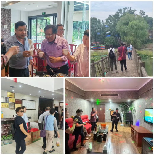 湖南省五星级农庄——大明生态休闲山庄位于长沙市开福区沙坪街道大明村,距离长沙市区约半小时车程,交通方便;大明山庄占地面积550亩,山水环绕,风景旖旎。活动中,老同志们或是漫步于秋意盎然的山庄,欣赏着大自然的美景;或是聚在一起,回忆着曾经的奋斗岁月,交流着生活的日常,脸上洋溢着幸福的笑容。
